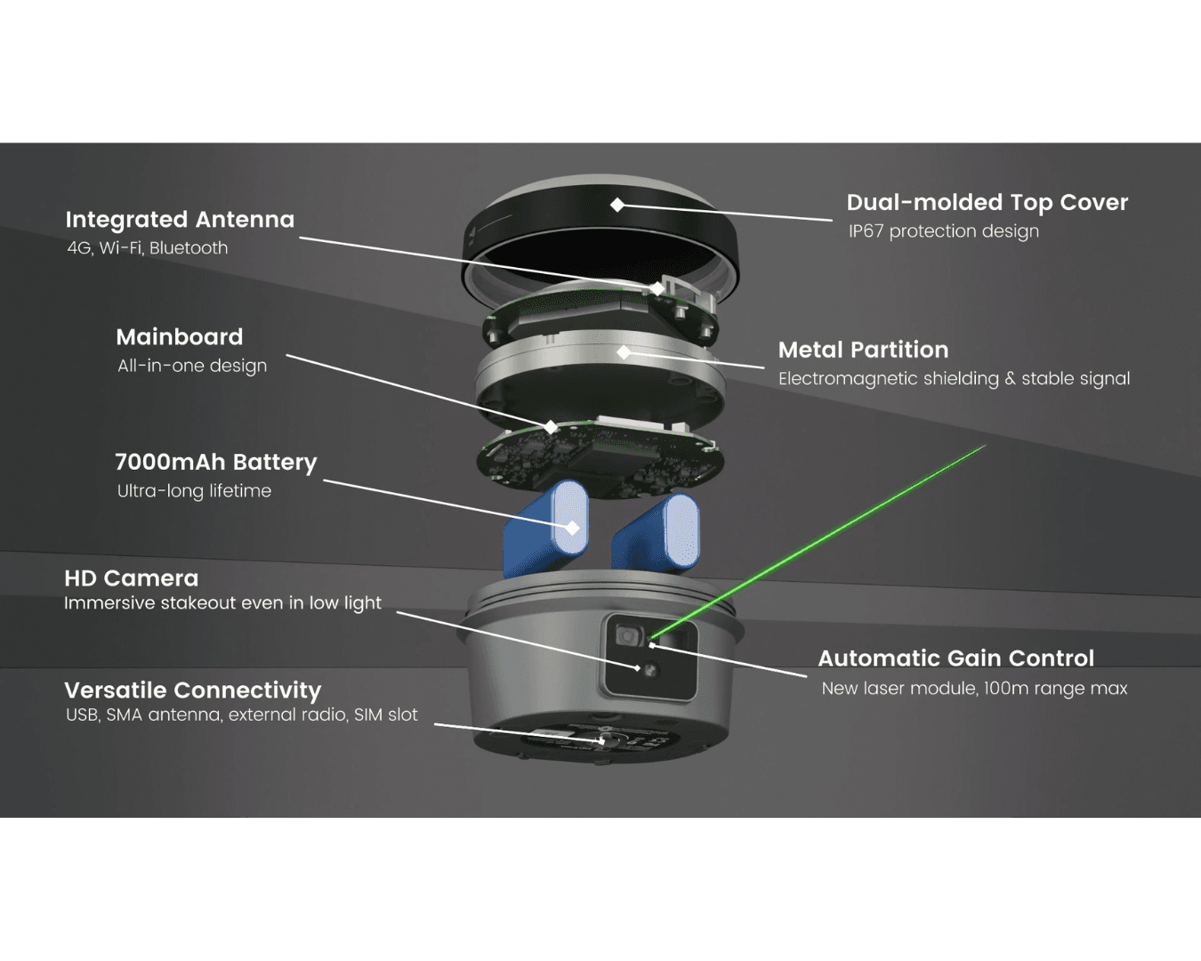 Protección IP68 de resistencia extrema: Inmersión continua hasta 1m, resistencia completa al polvo, rango térmico de -35°C a +65°C (más amplio que la competencia). Trabaja bajo lluvia torrencial, nieve, polvo de obra, spray salino costero o humedad tropical. Diseño robusto para obra civil, agricultura, topografía forestal y levantamientos costeros donde las condiciones adversas son la norma.