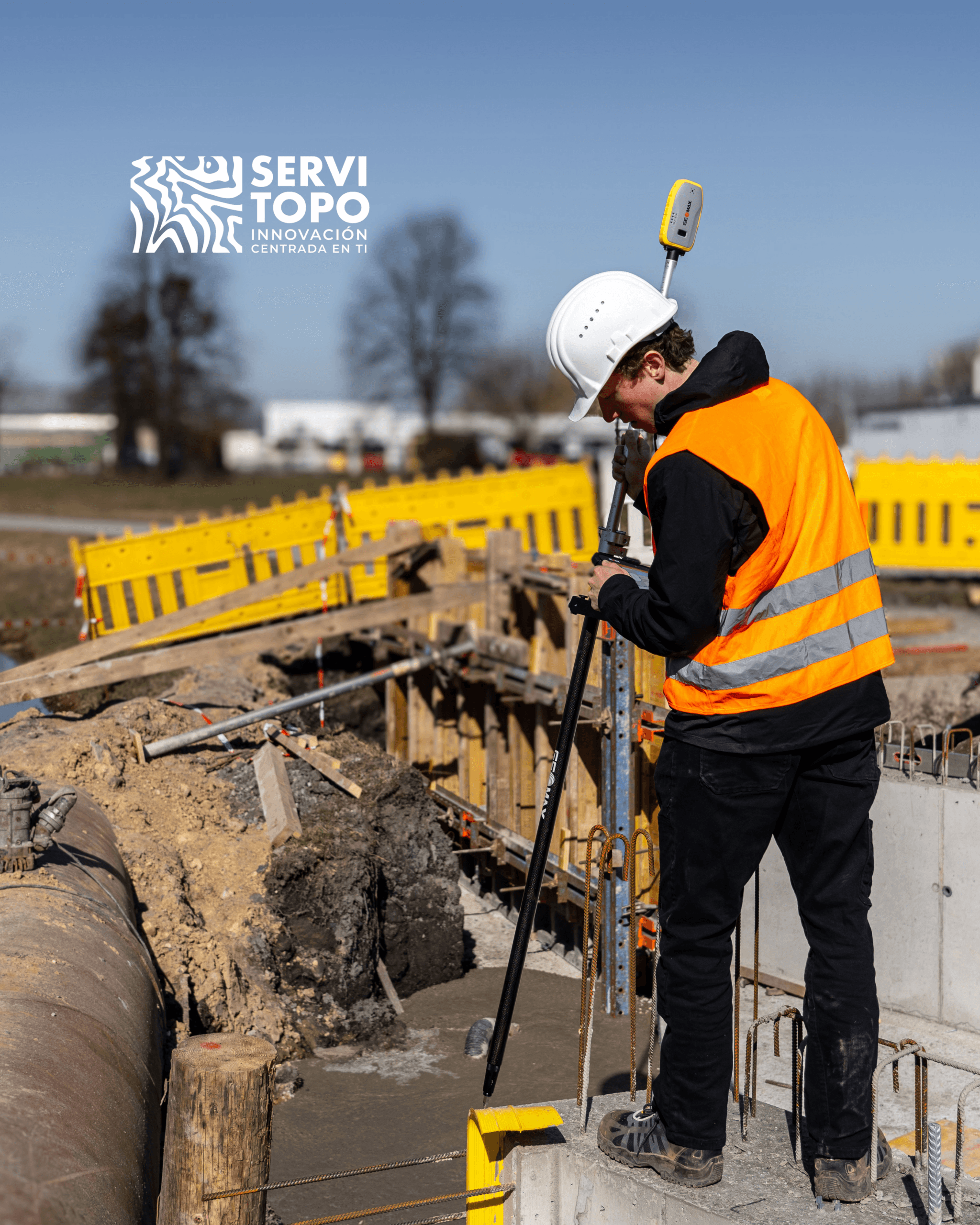 Construcción y replanteo: Replanteos de cimentaciones, pilares, muros y conducciones con precisión RTK de 2 cm horizontal. La compensación de inclinación sin calibración permite replantear desde el borde de zanjas inclinando el jalón sin descender, eliminando riesgos de caída. La integración con X-PAD Ultimate simplifica el replanteo mediante interfaz intuitiva. La autonomía superior a 20 horas cubre jornadas completas sin interrupciones.